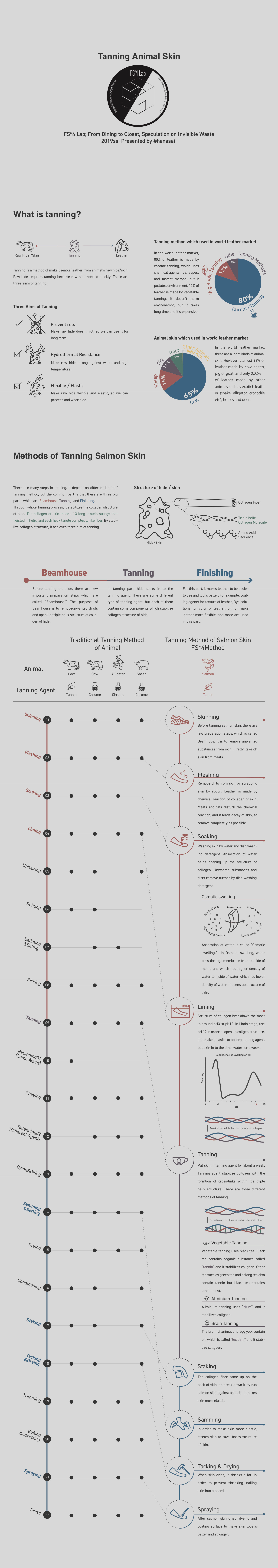 It records experiments and the method of tanning salmon skin, which we established in this project.