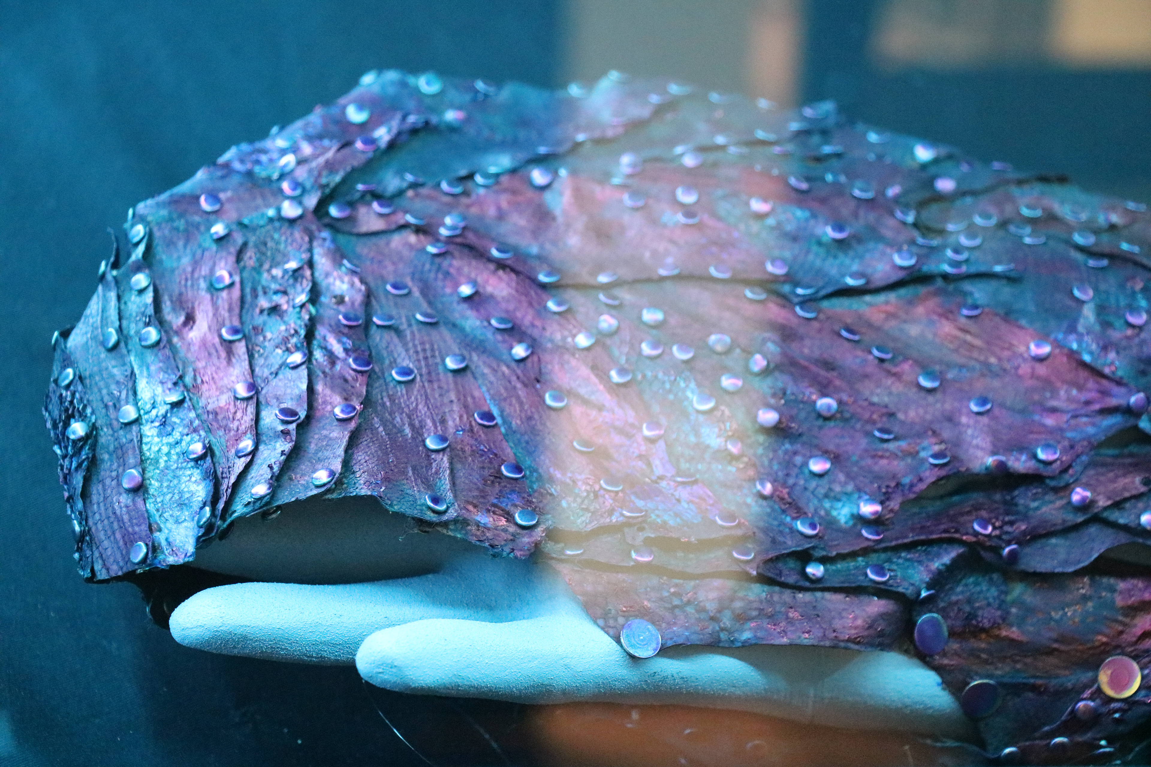This video is a making video of arm suit by using pieces of salmon leather, which made by our tanning method.